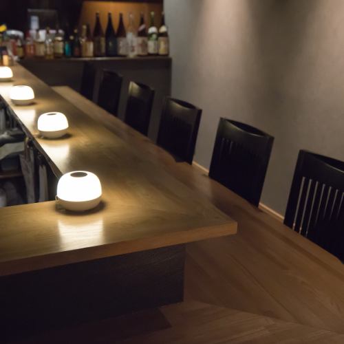和の雰囲気が漂う空間となっておりますので、家に帰ってきたような落ち着きを感じることができると思います。カウンター席は木のぬくもりを感じられるお席となっております。